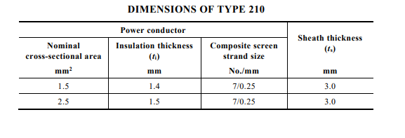 The conductor sheath thickness varies according to the conductor size, with 1.4 millimetres thickness for 1.5 square millimetre conductors and 1.5 millimetres thickness for 2.5 square millimetre conductors. This graduated approach ensures that smaller conductors receive adequate protection while avoiding unnecessary bulk that could compromise flexibility in larger sizes.