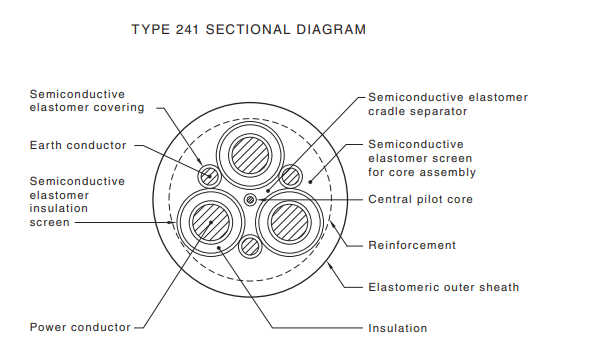The technical specifications of Type 241 cables reflect decades of engineering refinement aimed at meeting the unique demands of mining operations. These parameters represent careful balancing of electrical performance, mechanical durability, and safety requirements that enable reliable operation in challenging environments.